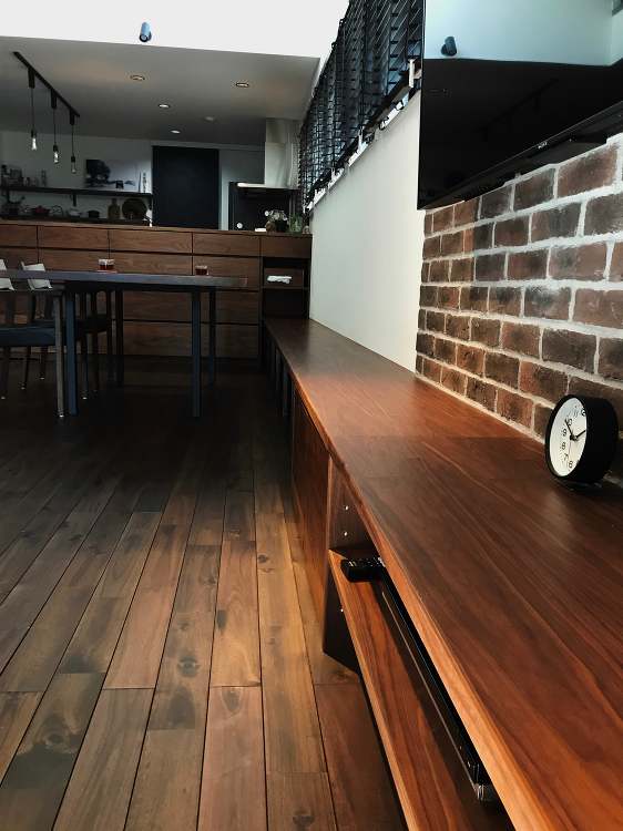 - ウォールナットのベンチと繋がるTVボード オーダーメイド家具のKIJI... [ 東京都 墨田区 ]