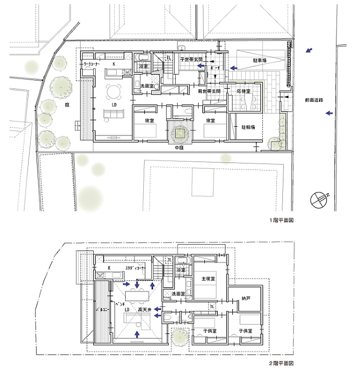 《2023年10月》 木造2階建 / 敷地・245.60 ? 延床・222.95 ? 施工 株式会社 若杉建設 写真 Blitz studio 1階を親世帯、2階を子世帯とした2世帯住宅である。 敷地は、閑静な住宅地。東西の隣地には敷地境界...